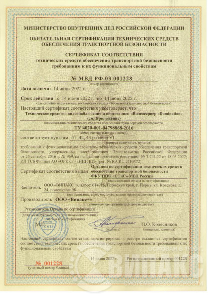 Видеосервер Domination IP-32-12-MDR – Реестровый номер __________ (Реестр российской промышленной продукции (ПП РФ 719 от 17.07.2015).