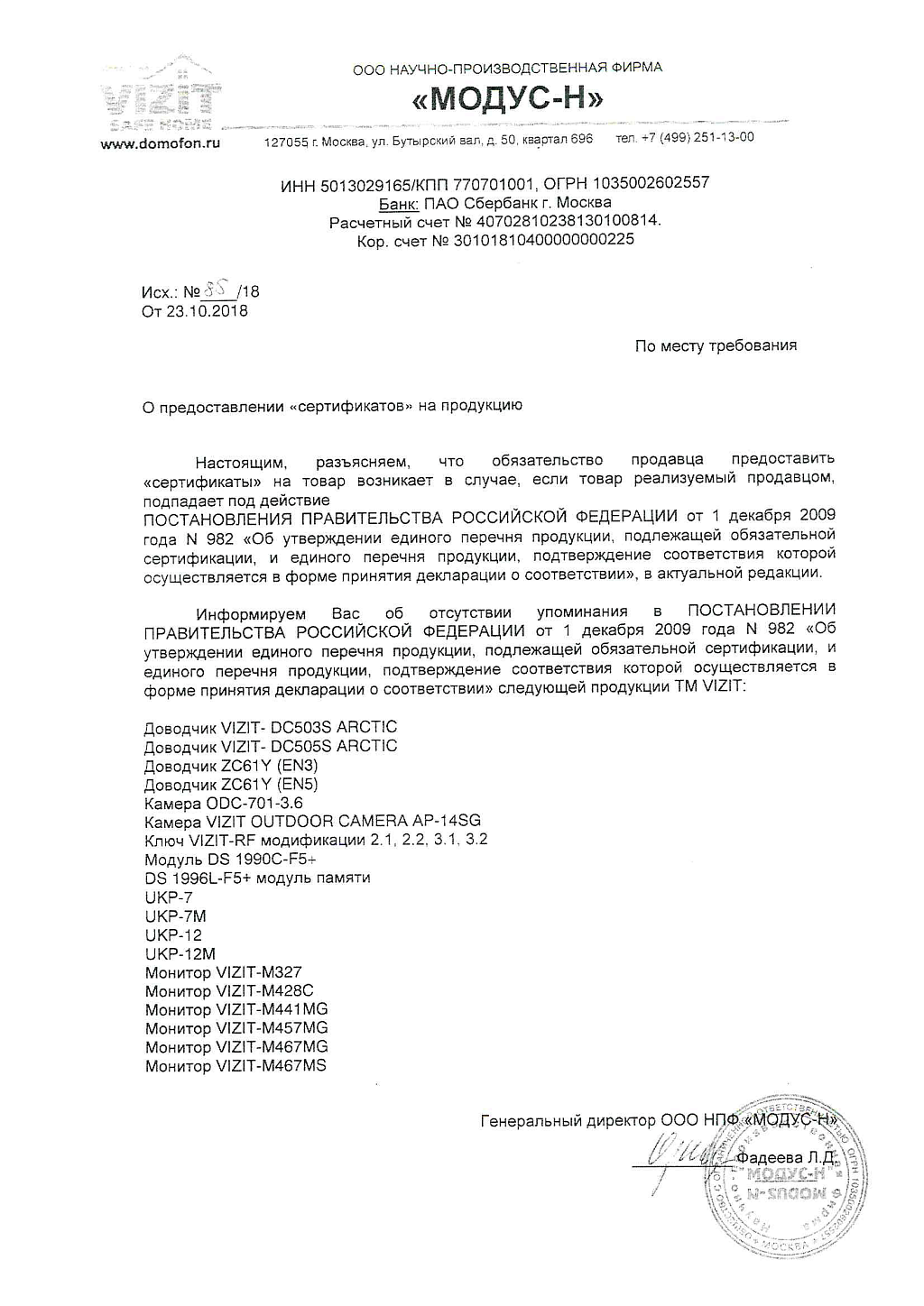 • Производитель Vizit