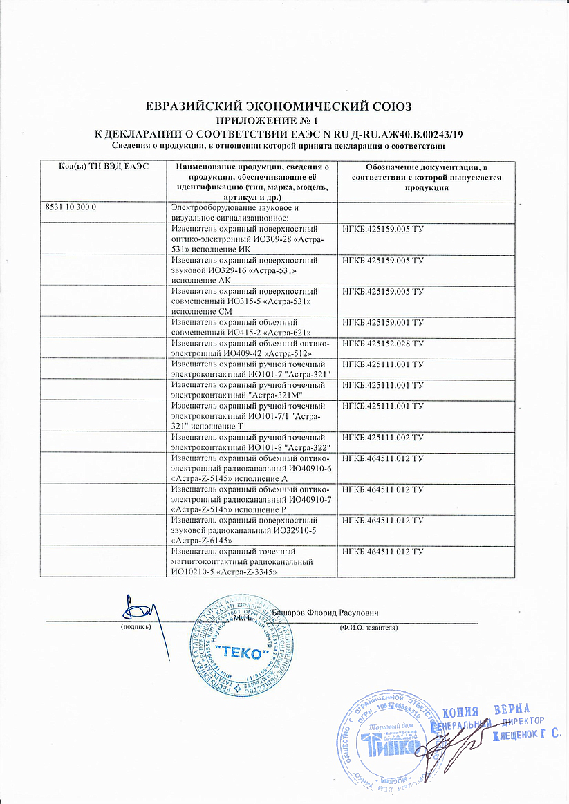 Извещатель Астра-531 ИК Теко купить в Уфе в компании ВИПАКС.