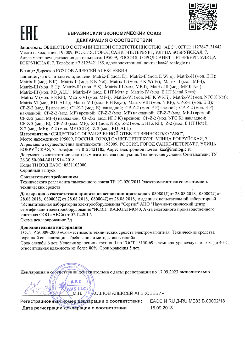 Считыватель Matrix-III RD-All (тёмный) IronLogic купить в Уфе в компании ВИПАКС.