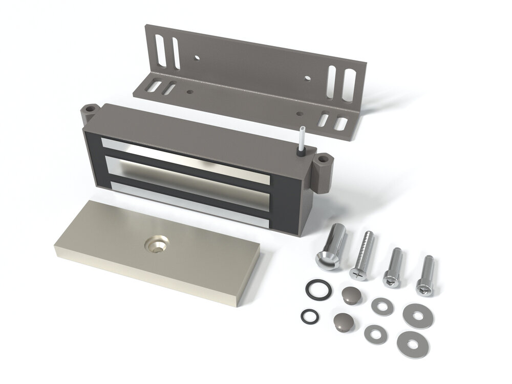 • электромагнитный замок представляет собой корпус с электромагнитом и ответную металлическую пластину;