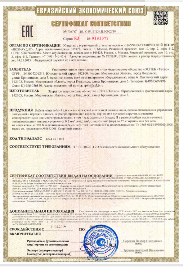 • Для одиночной и групповой прокладки в системах ОПС, СОУЭ, системах безопасности и телекоммуникаций, которые должны сохранять работоспособность в условиях пожара.