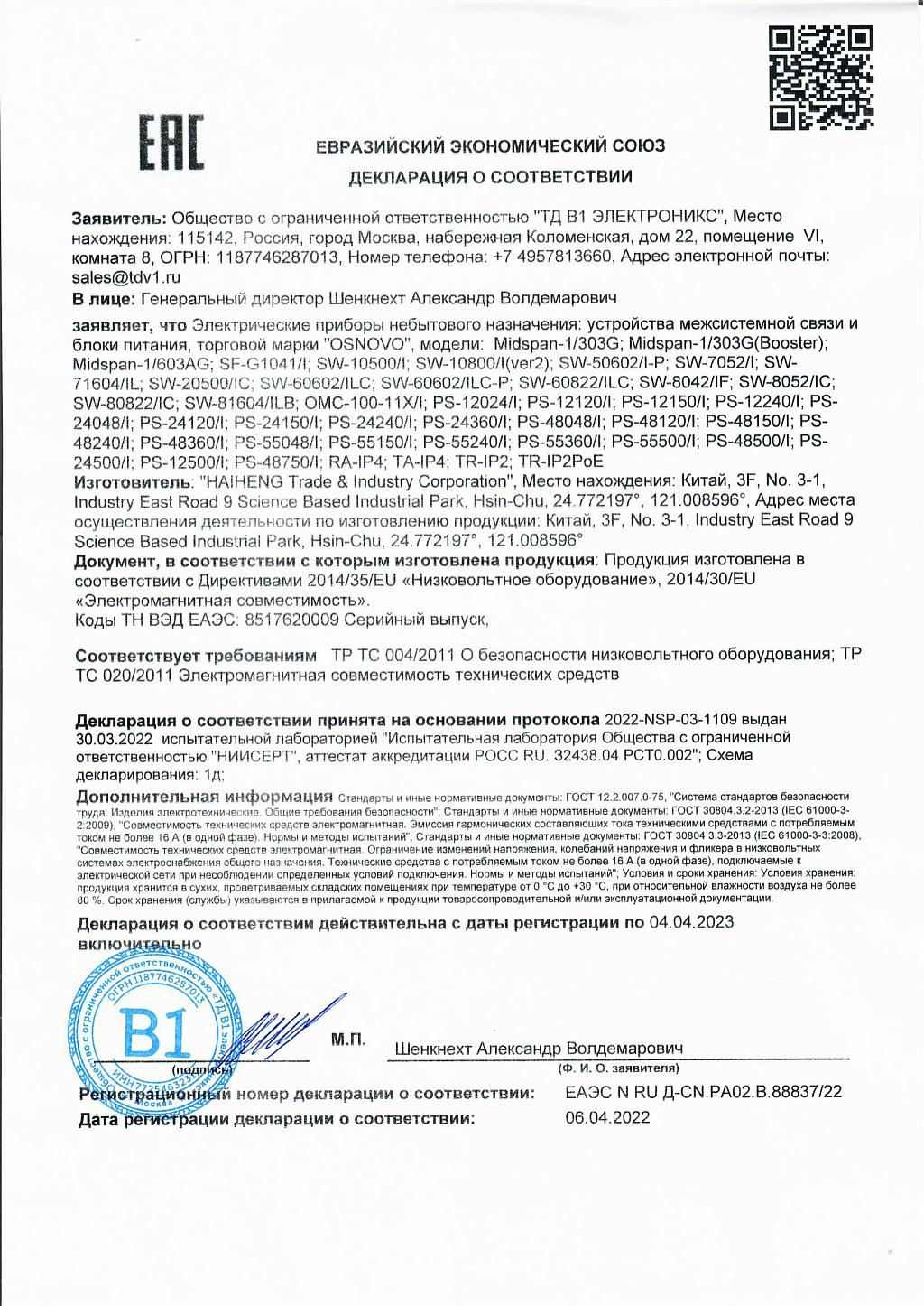 Блок питания промышленный PS-55048/I OSNOVO купить в Уфе в компании ВИПАКС.