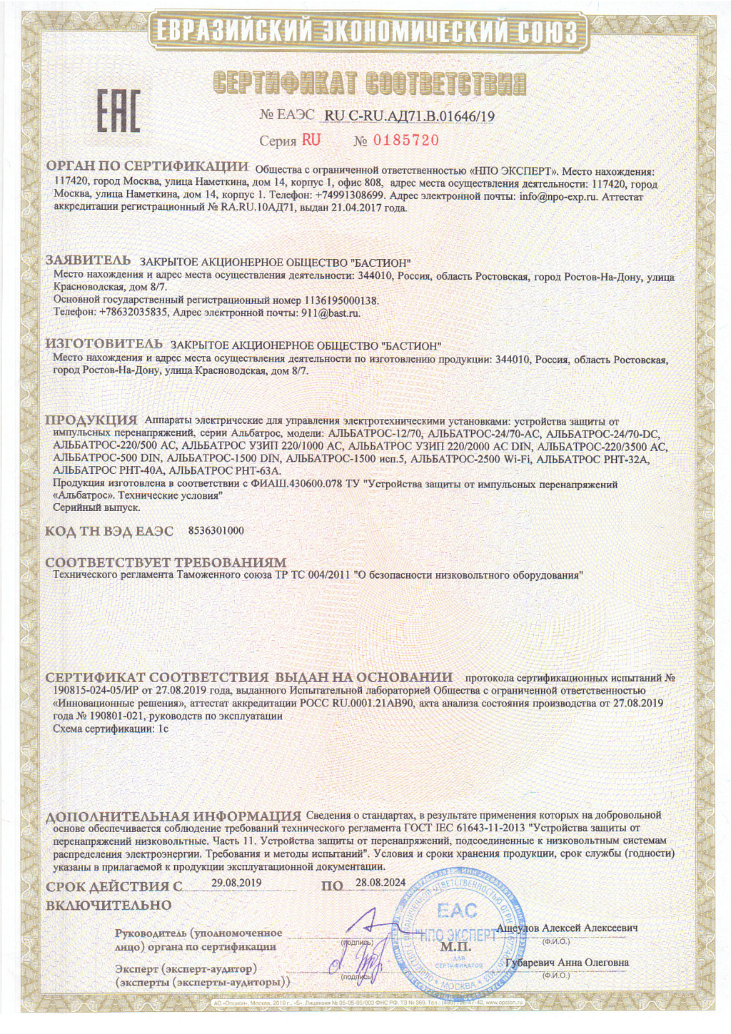 Изделие относится к УЗИП класса III(D) по ГОСТ Р 51992-2002 (МЭК 61643-1-98)
